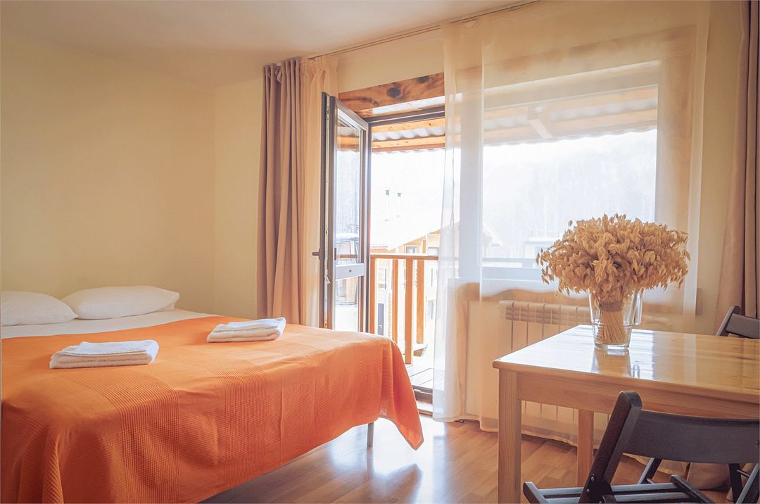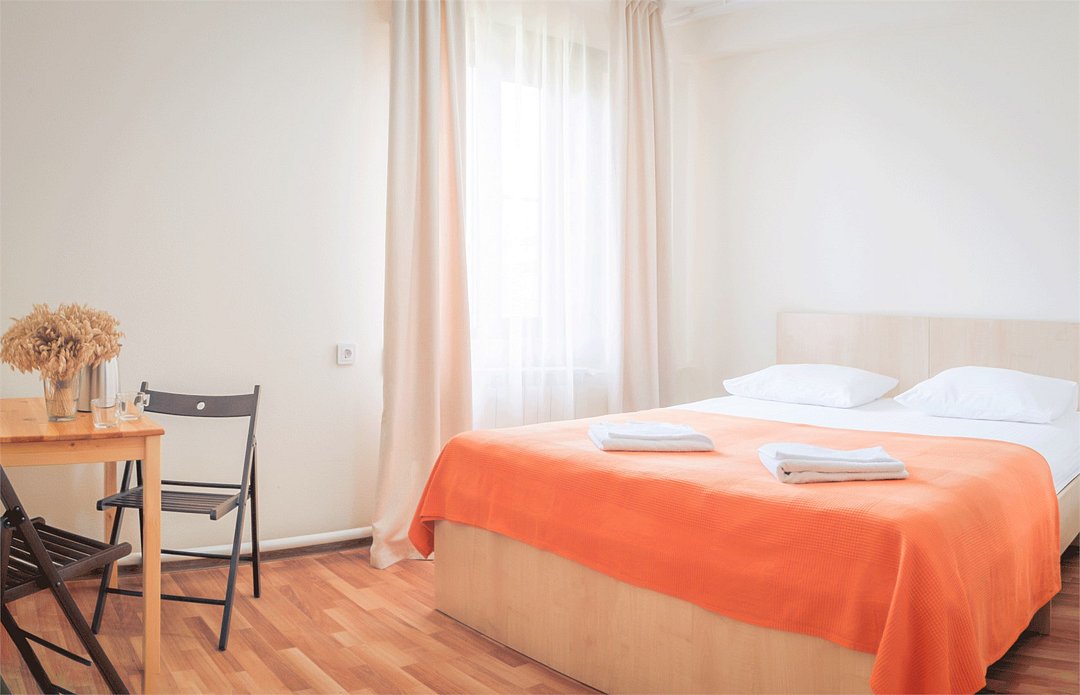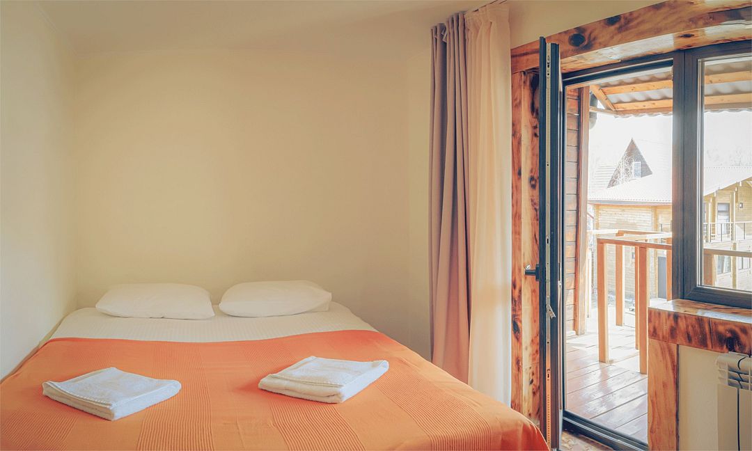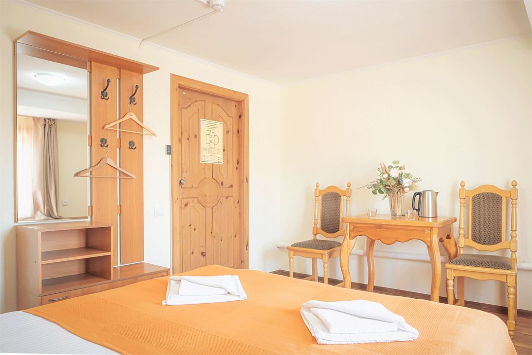 Двухкомнатный номер с балконом, 45 кв м, 2 этаж (над банным комплексом). На балконе столик, два диванчика, Wi-fi, кондиционер, телевизор.