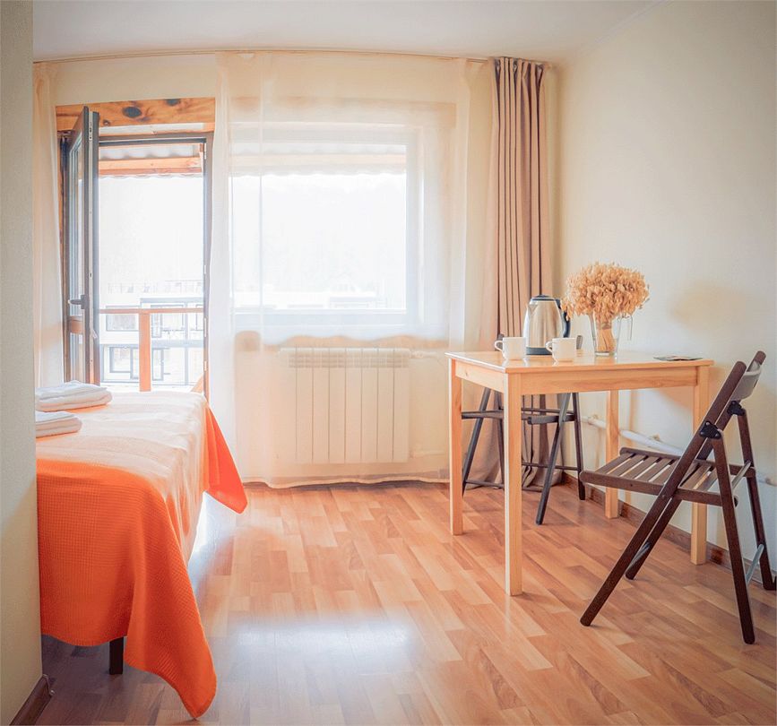 Однокомнатный номер с балконом, 15 кв м, 2 этаж. На балконе столик и стулья, Wi-fi.