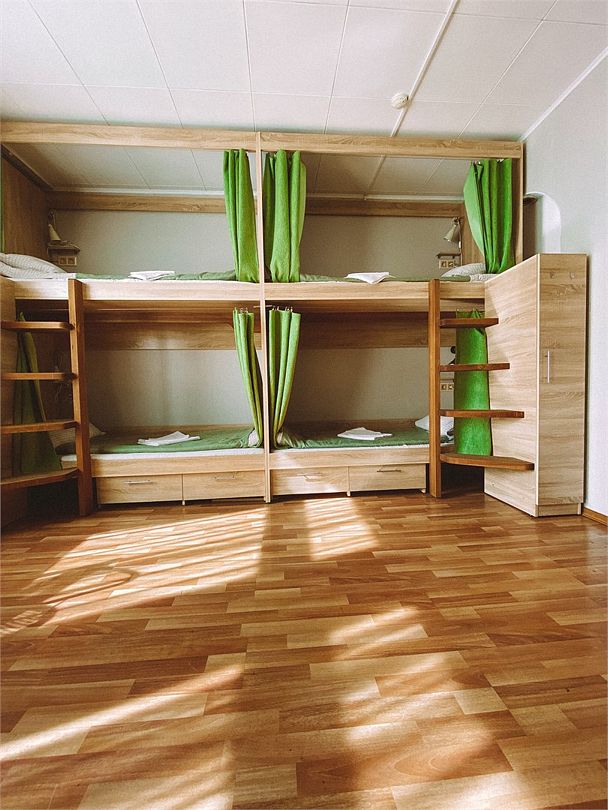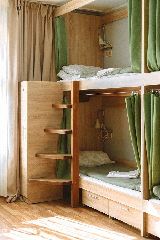 Спальные места: 8 основных — 4 двухъярусные кровати. Есть возможность поставить 1 дополнительное (еврораскладушка).