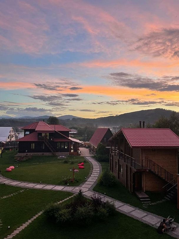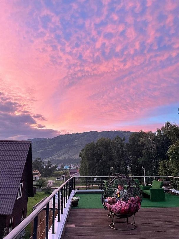 Лучшее место на Земле). Если серьезно, один из лучших отелей на Алтае, где мы были. Сопоставим с гостиницами в бирюзовой катуни, но цена намного приятнее. В своей ценовой категории best однозначно. Чистейшие номера, ухоженная территория, вся мебель из икеи или в стиле икеи. Получилось этакое шале в Альпах. Есть терраса на крыше, где можно посидеть позагорать и пофотаться на фоне гор, не поднимаясь в сами горы😂 бассейн с подогревом, отличная чистая и теплая баня, есть веники, культурная и красивая мангальная зона, даже две включены в стоимость. На территории есть детская площадка и большой батут. Дети оценили и мы тоже, тк не приходилось их постоянно развлекать. В номере есть все необходимое : полотенца, фен, косметика для душа, телевизор, микроволновка, мини холодильник, раковина, кухонная зона, кондиционер. Ночью тепло, есть отопление. На территории прекрасное атомосферное кафе, на мой взгляд, самое вкусное и красивое в усть - коксе. Включенные завтраки по-настоящему вкусные и сытные, порции с лихвой хватает взрослому мужчине, нам с детьми было много. В свободном доступе всегда горячая вода, чай, кофе и вкусняшки. Гостеприимные хощяева всегда помогут с любым вопросом от дополнительных полотенец, до консультации, куда бы нам сьездить, что посмотреть и куда мы проедем на своей машине, а куда лучше не соваться. Экскурсии тоде есть, цены приятные. В общем, нам ОЧЕНЬ понравилось, спасибо большое, с удовольствием вернемся еще не раз. Муж вообще был в шоке, что в такой.... Ээээ.. дали от цивилизации нашелся такого уровня отель. Комфорт как на бирюзовой катуни, природа как на кату ярыке, тишина, мало отдыхающих и нет громко отмечающих. Красота!