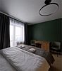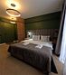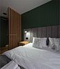 Две спальни: в одной — двуспальная кровать, прикроватная тумбочка, шкаф для одежды, бра; во второй — двуспальная кровать, прикроватные тумбочки, шкаф для одежды, зеркало, кресло, бра, балкон.