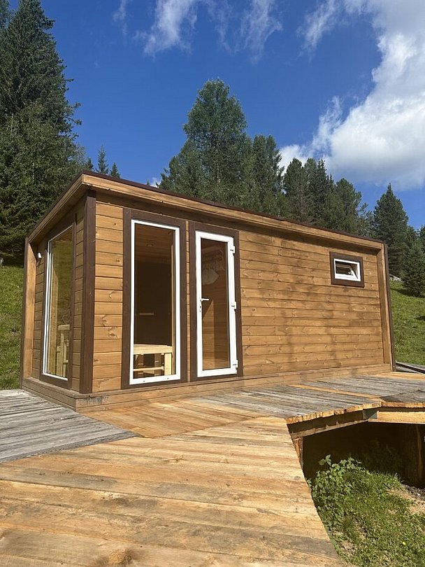 Инфраструктура: тапочки, зона отдыха, полотенца, простыни, шапочки, дубовые веники, березовые веники, чай/угощенияМаленькая банька на озере с видом на горы. Есть возможность окунаться в крытой купели. Рассчитана на компанию 2-4 человека.