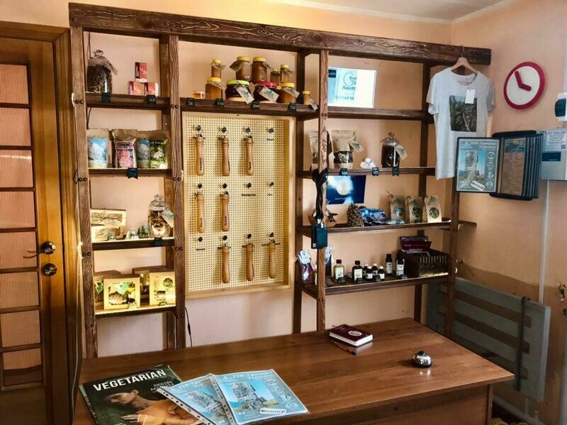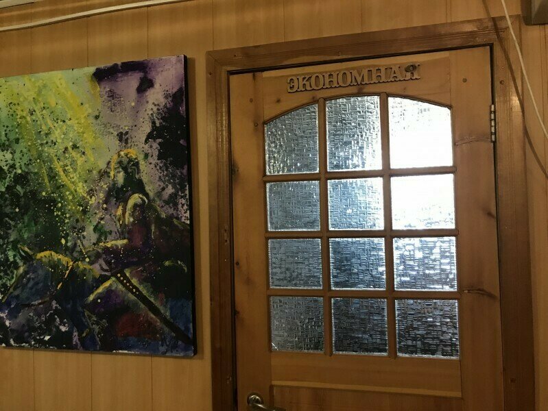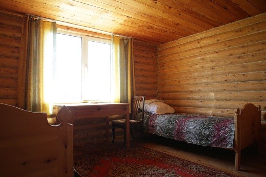 Одноместный номер эконом-класса расположен на цокольном этаже гостевого дома. В комнате кедровая кровать, белое белье, полотенце. Полки для одежды, стол, кедровый стул - кресло. Туалет, душ — на этаже. В комнате небольшое окно. Вид из окна на территорию гостевого дома. Стены украшены картинами американской художницы К. Хилтон. Можно воспользоваться общей кухней или заказать питание