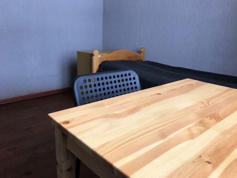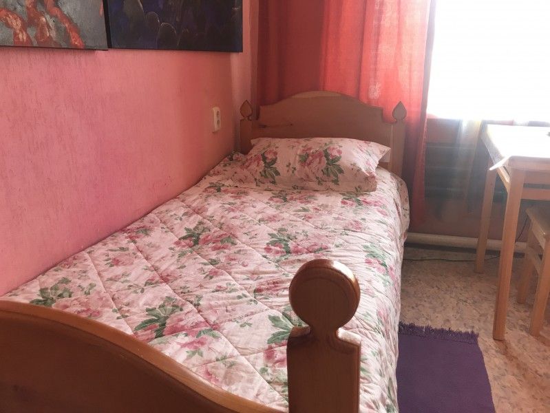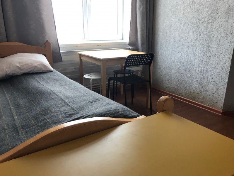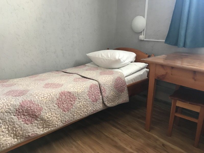 Усть-Кокса. Одноместный номер эконом-класса расположен на цокольном этаже гостевого дома. В комнате кедровая кровать, белое белье, полотенце. Полки для одежды, стол, кедровый стул - кресло. Туалет, душ — на этаже. В комнате небольшое окно. Вид из окна на территорию гостевого дома. Стены украшены картинами американской художницы К. Хилтон. Можно воспользоваться общей кухней или заказать питание
