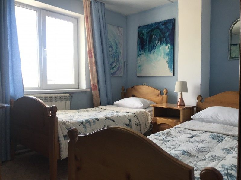 две односпальные кровати или 2-спальный диван, удобства на этаже