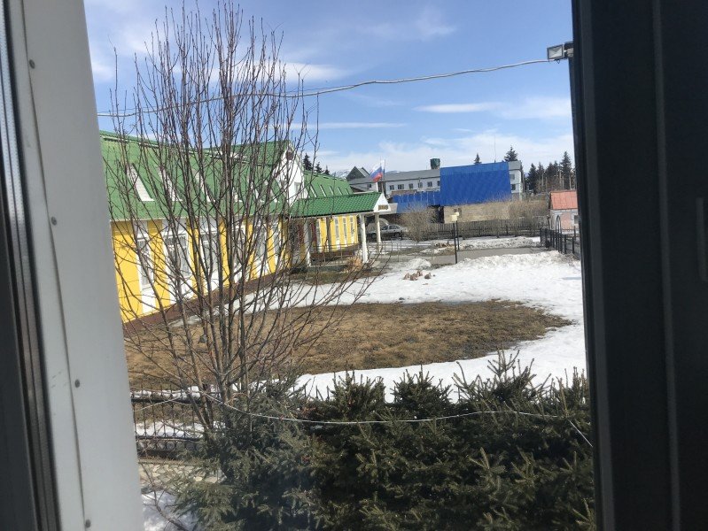 Окно выходит на солнечную сторону. Прекрасный вид из окна на Катунский хребет.