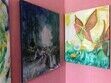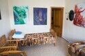 Комната украшена картинами американской художницы Кэрол Хилтнер.