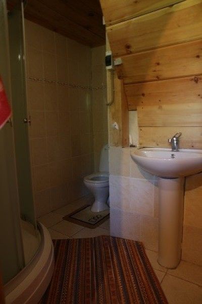Номер расположен на втором этаже гостевого дома. В комнате кедровая кровать, белое белье, полотенце. Имеются тумбочка, кресло и полки для одежды, стол. Кресло раскладывается в дополнительное спальное место. В номере имеются туалет и душ.