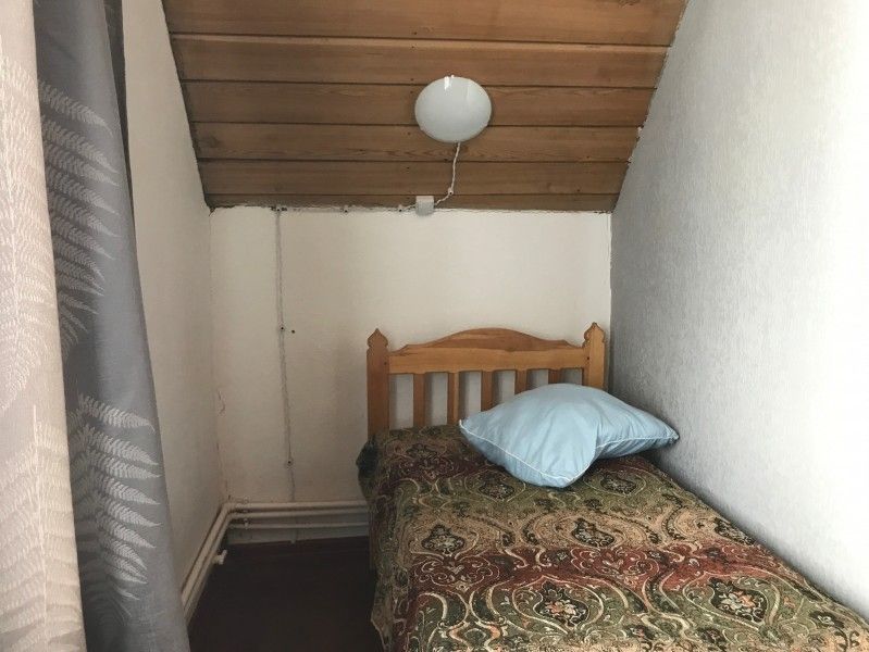 Высота потолка 270 см. В комнате имеются две одноместные кедровые кровати, которые можно соединить в одну двуспальную кровать.