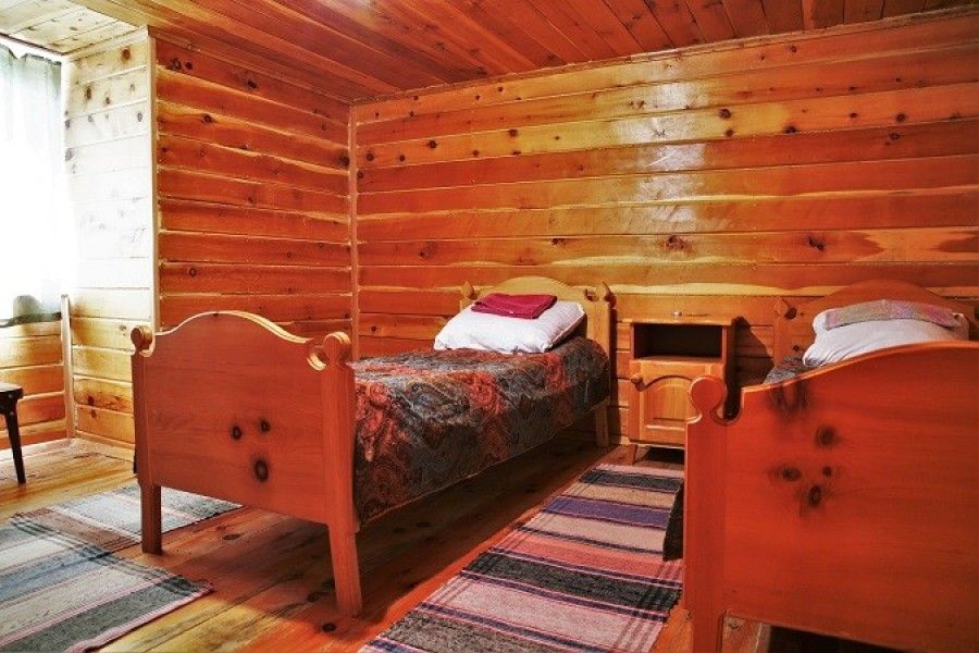 В комнате имеются две одноместные кедровые кровати, которые можно соединить в одну двуспальную кровать.