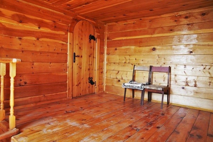 Стены отделаны штукатуркой короед. Потолки деревянные.