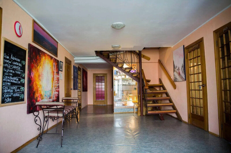 Усть-Кокса. Двухместные комнаты эконом-класса расположены на цокольном этаже гостевого дома. Два варианта комнат: с односпальными кедровыми кроватями и двуспальным раскладным диваном. Белое белье, полотенце. Полки для одежды, тумбочки, раковина, стол. Туалет, душ — на этаже. В комнате небольшое окно Стены украшены картинами американской художницы К. Хилтон. Можно воспользоваться общей кухней или заказать питание.