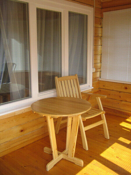 - Отапливаемая веранда: стол, 2 стула, 2 шезлонга.