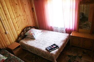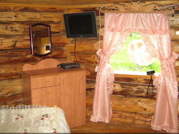 - Одна двуспальная кровати, печь, умывальник, зеркало, прикроватные тумбочки, столик.