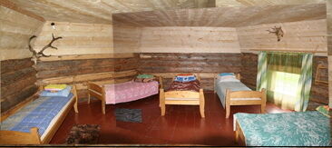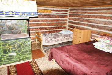 - Одна двуспальная и одна односпальная кровати, печь, умывальник, зеркало, прикроватные тумбочки, столик.