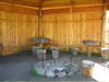 - Односпальные кровати по периметру юрты, печь, стол, умывальник, зеркало.