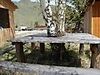 - Односпальные кровати по периметру аила, печь, стол, умывальник, зеркало.