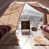 две кровати, два кресла, терасса. Блок с душевыми и туалетами расположен в отдельной постройке, недалеко от жилых шатров.