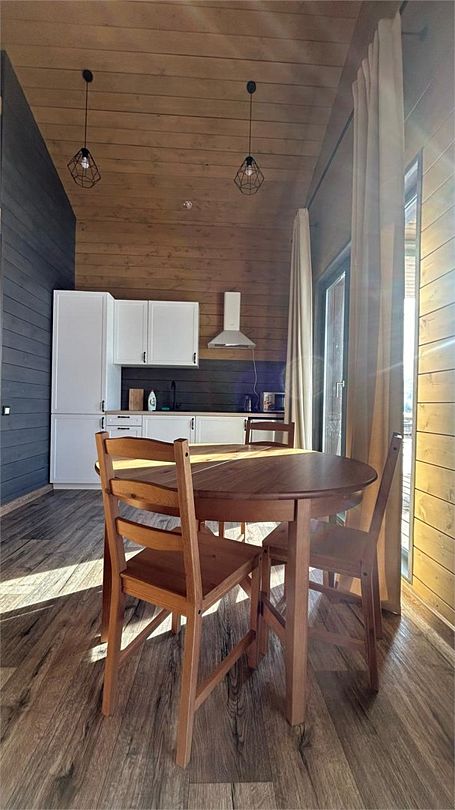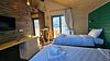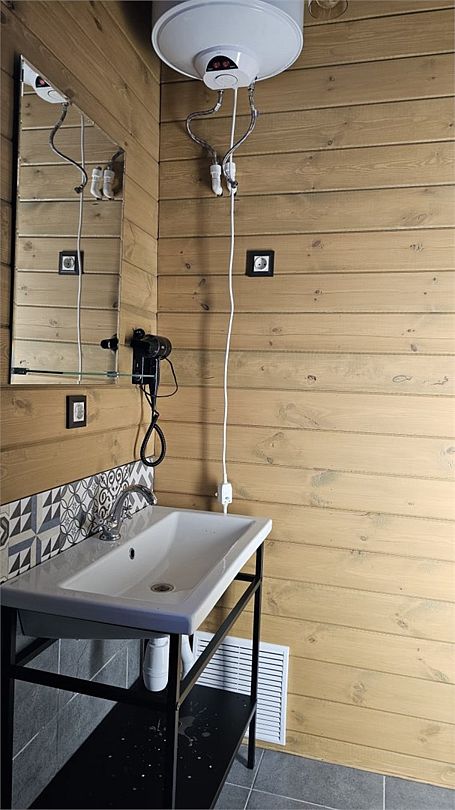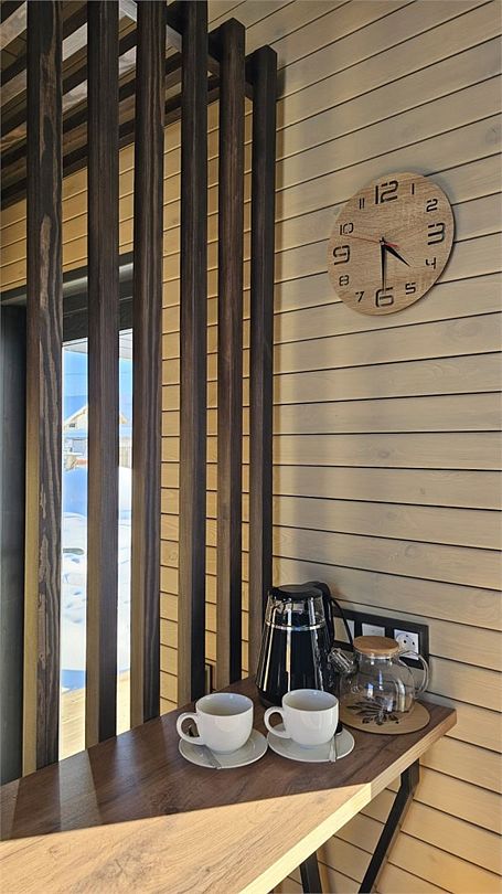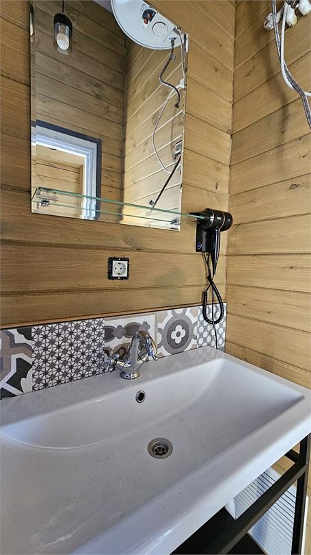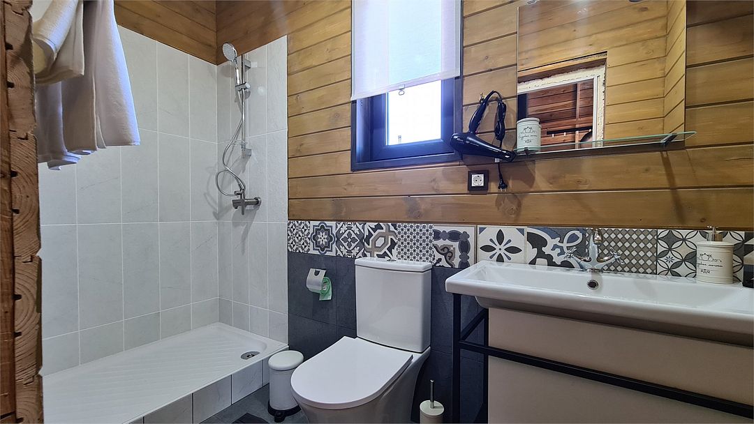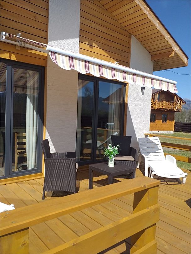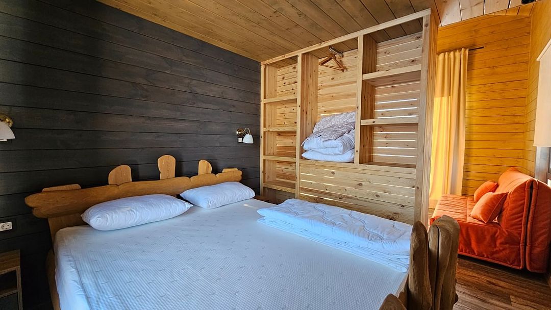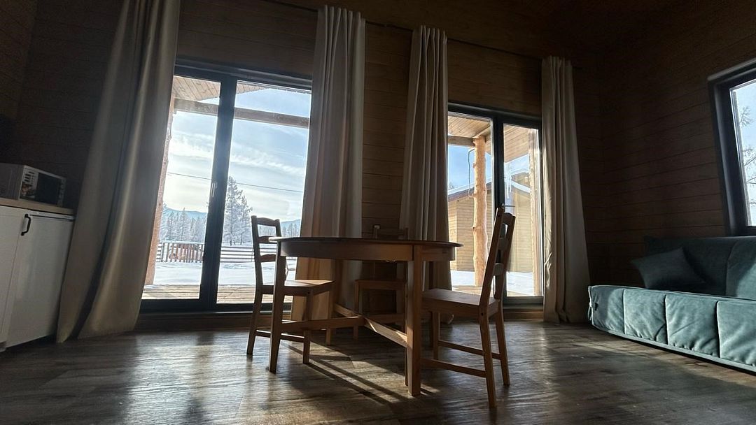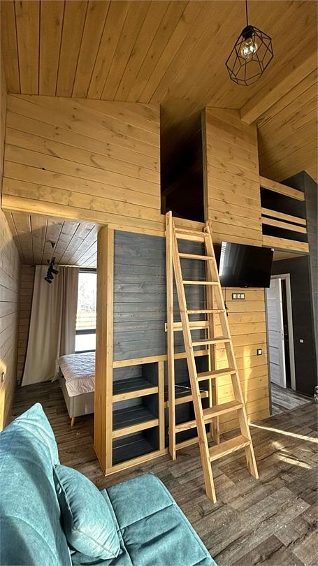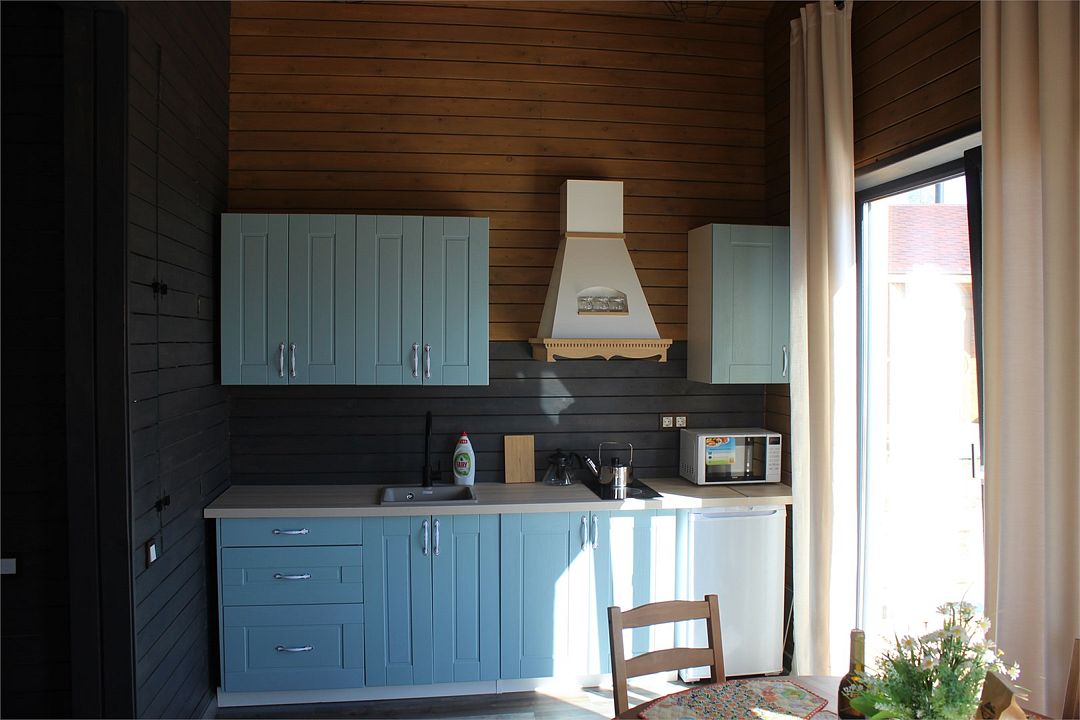 Домик со всеми удобствами и уютной террасой с видом на горы. Просторная гостиная с панорамными окнами, совмещенная с кухонной зоной. Современный санузел с душевой кабиной. Спальня с большой двуспальной кроватью и мансардными окнами на крыше.Услуги и удобства