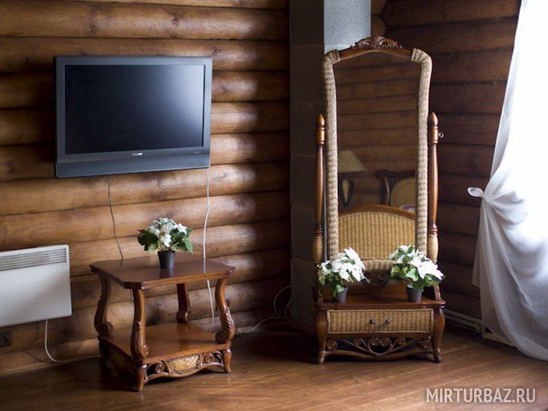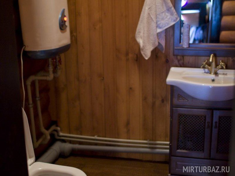 Ванная комната с душевой кабиной, биде и унитазом. Одна туалетная комната с унитазом и раковиной. Телевидение, караоке, современная бытовая техника на кухне, на первом этаже — камин и печь.