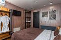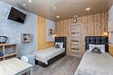 Практичный комфортный номер с максимальным наполнением! Отличительной особенностью является дизайн номера, повышенная степень комфортности и особый, брутальный стиль в интерьере. Интерьер комнаты выдержан в строгих тоннах, песочных тонах и предлагает своим гостям незабываемый уют без шума и суеты.