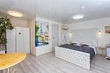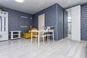 Улучшенный семейный номер на 4-х человек предлагает своим гостям спокойную серо-бирюзовую, расслабляющую атмосферу.