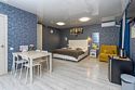 Номер категории Стандарт с Евро-отделкой и полной комплектацией номера, парковка у номера, места приготовления и приема пищи, прачечная 24/7, зона барбекю. Номер Стандарт «Австрия-Вена», выполненный в благородной, серо-голубой гамме.