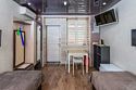 Брутальный номер лофт в стиле современных людей. В отделке мебели использована только ручная работа с авторским дизайном из железа и дерева.