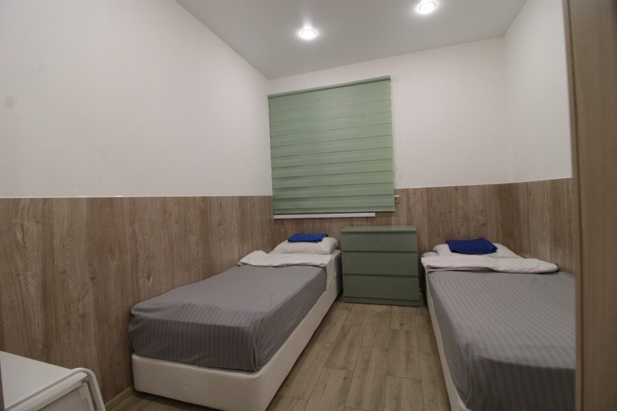 Светлые, просторные комнаты с качественной мебелью. В спальнях расположены комфортные односпальные кровати с ортопедическим матрасом Ascona, с возможностью соединить их в двуспальные кровати.