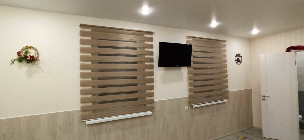 Зона отдыха с современной мебелью и телевизором. Рабочие зоны, интернет и телевидение.