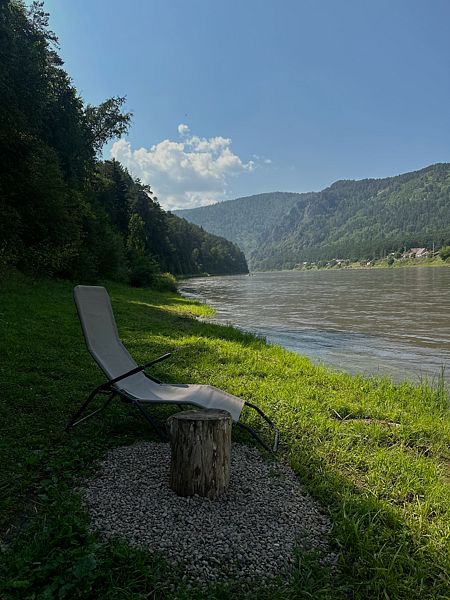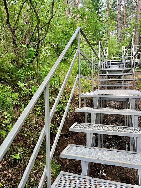 Летом вас ждёт освежающее купание в чистой речке с полностью оборудованным и безопасным спуском.