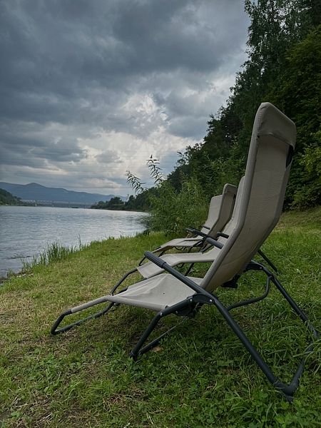 Представьте себе теплый вечер в окружении природы на берегу реки.