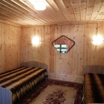 Кровати, тумбочки, спутниковое телевидение, камин, теплоснабжение, комната для умывания (умывальник).