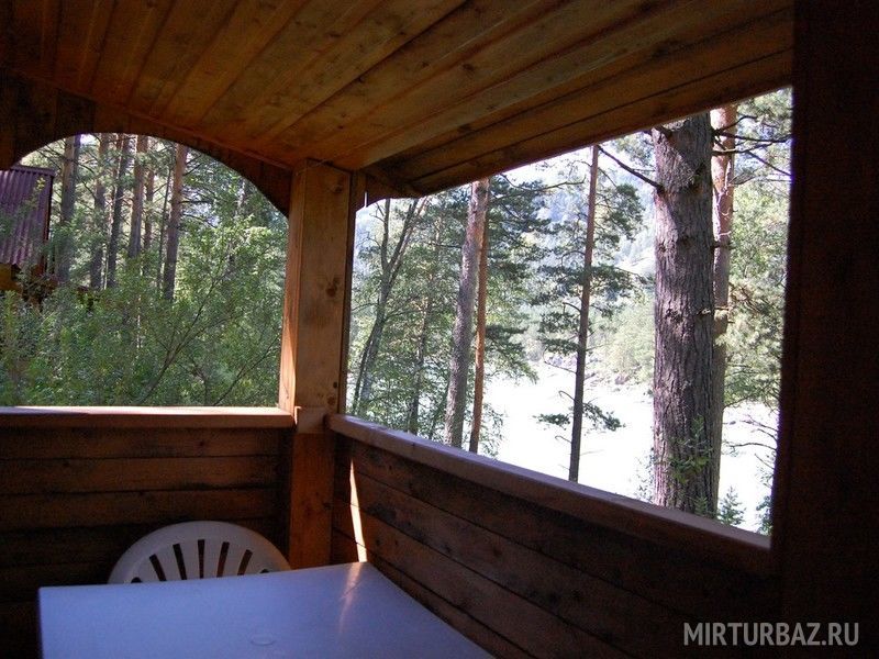 Дом лесника, дом охотника и дом грибника представляют собой отдельностоящих, 3 трехместных дома с балконом с которых открывается потрясающий вид на реку Катунь. Во всех номерах установлен телевизор.