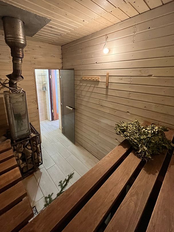 Инфраструктура: зона отдыха, шапочки, душ, березовые веникиМинимальное время аренды: 3 часаГлэмпинг предлагает своим гостям уникальную возможность посетить настоящую русскую баню на дровах, где царит атмосфера уюта и расслабления. Просторная парилка и уютная зона отдыха с теплым полом приглашают к расслаблению и неспешным беседам, позволяя забыть о повседневных заботах и погрузиться в мир гармонии.