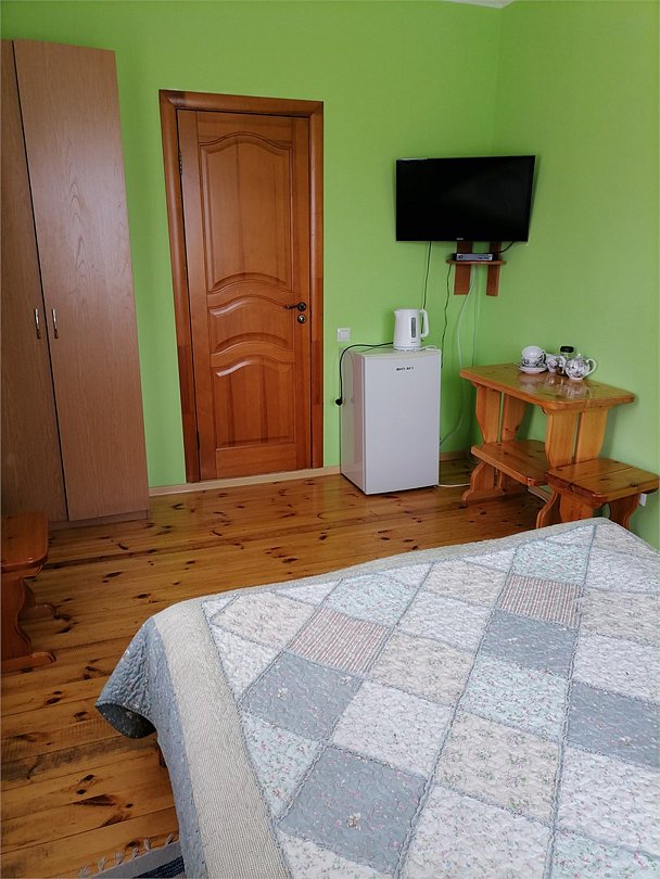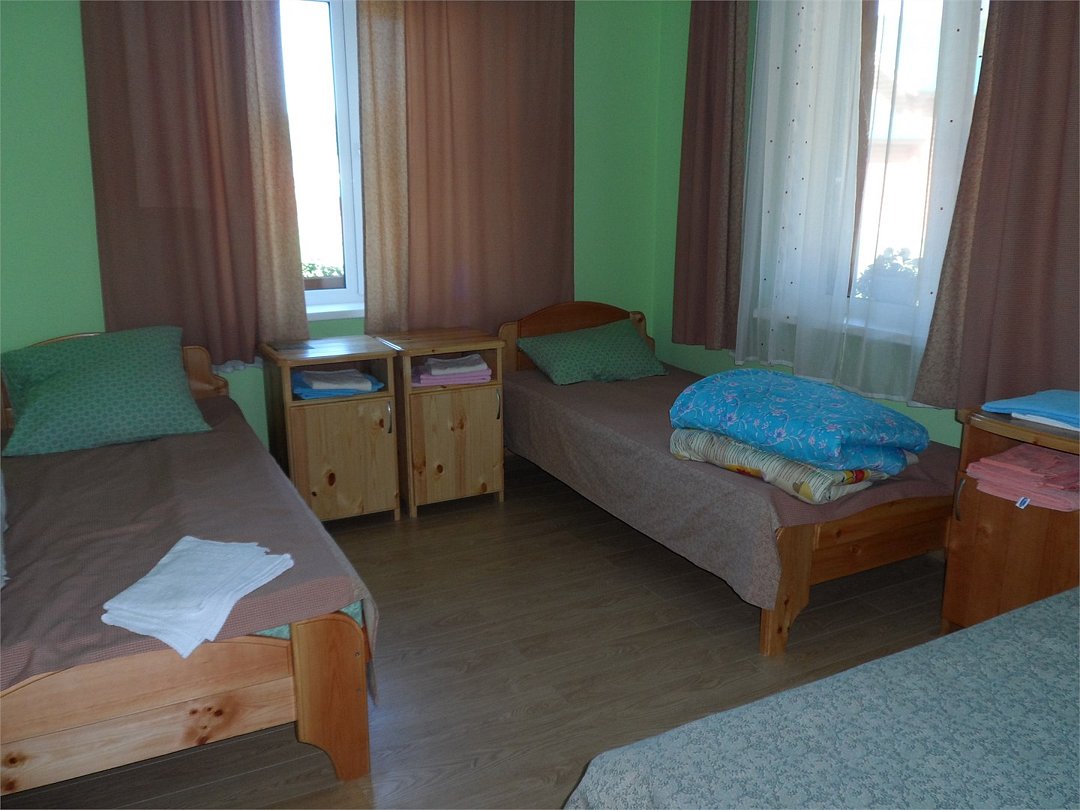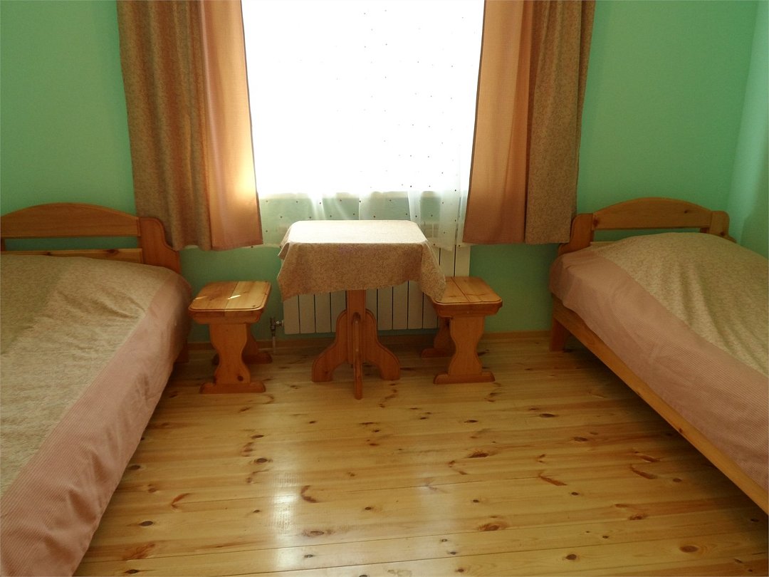 В номерах две односпальные кровати или одна двуспальная кровать, удобства на этаже, в номере шкаф, столик, стулья.Трехместный стандарт