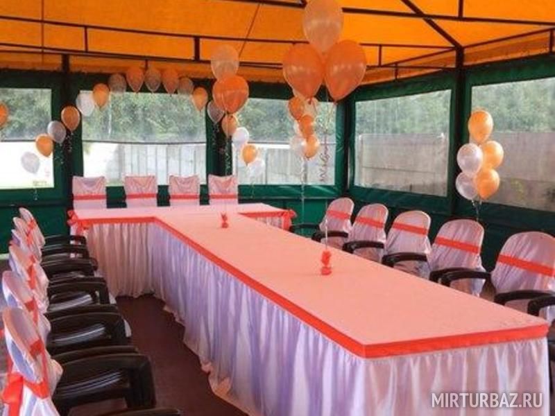 Стоимость аренды Летнего шатра с праздничным банкетом:- От 25 до 60 человек - 1 590 рублей с человека.
