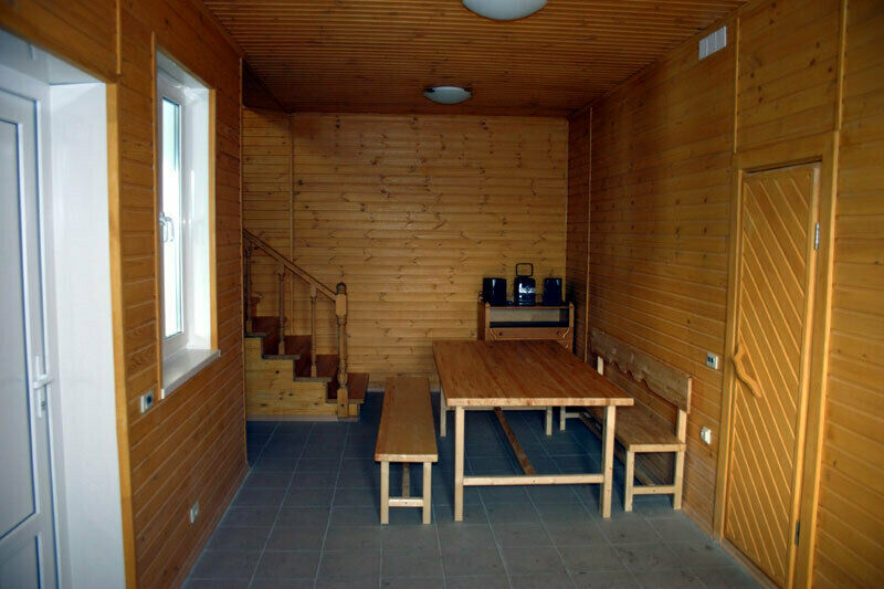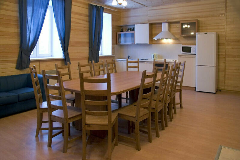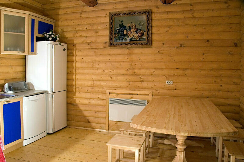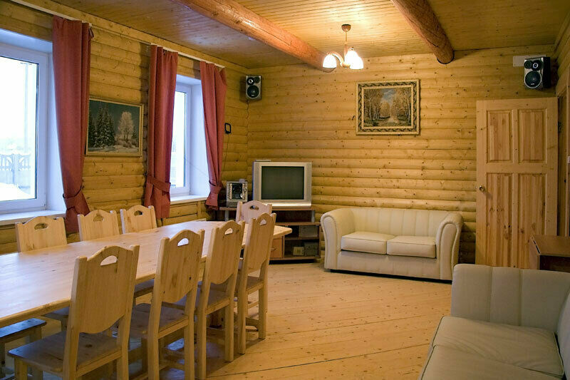 Оформленный в русском стиле, коттедж идеально подходит для небольших компаний (6-10 человек).