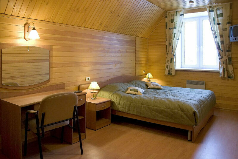 Оформленный в русском стиле, коттедж идеально подходит для небольших компаний (6-10 человек). Внутреннее убранство дома (деревянная мебель, бревенчатая отделка, камин, картины русских живописцев) — создаёт атмосферу «русской усадьбы».