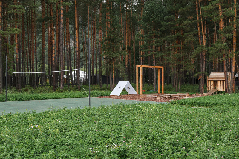 На территории отеля есть дорожки для прогулок с вечерней подсветкой, детская площадка, мини-ферма с кроликами, ресторан с видом на горы, уникальные локации для фото, банный комплекс и беседки.