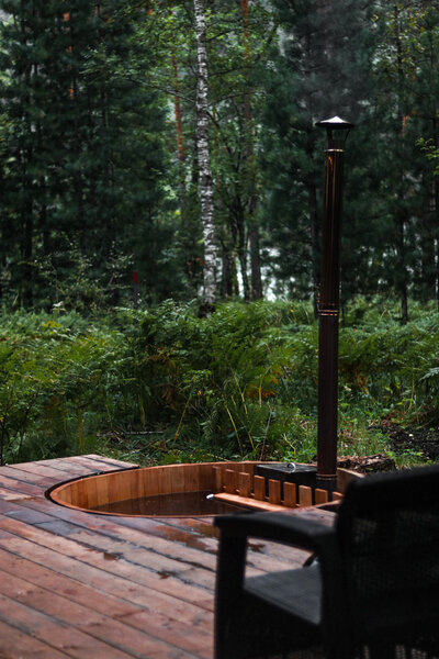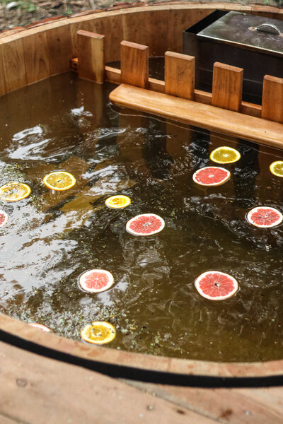 Купель с елью и цитрусом. Отдых в горячей купели поможет повысить общий тонус организма, снять хроническую усталость и стресс, активировать обмен веществ, улучшить кровообращения.