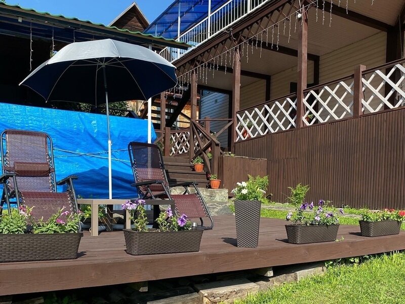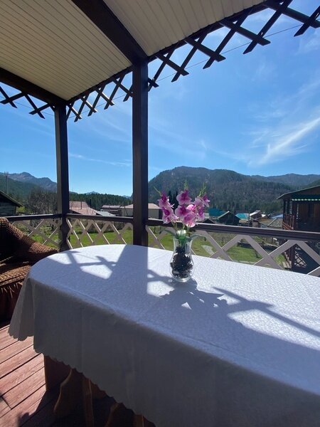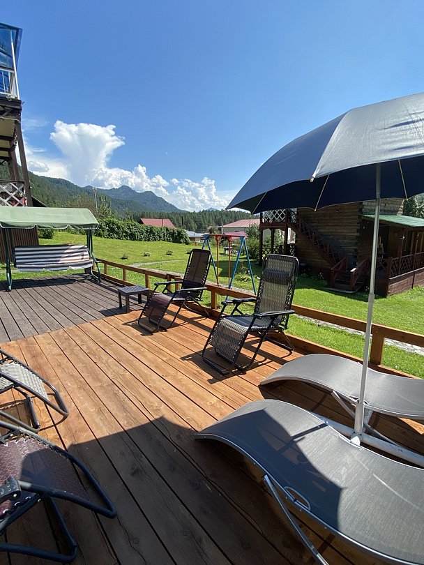 На территории гостевого дома «Усадьба Сибиряк Алтая», расположенной в селе Усть-Муны, находится уютный дом из кедра и просторный коттедж.