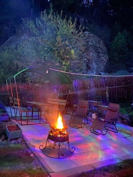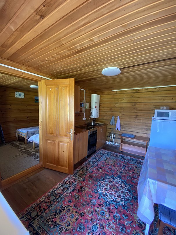 Дом оборудован кухней, тёплым душем, а также подарит отдыхающим потрясающий вид на горы.