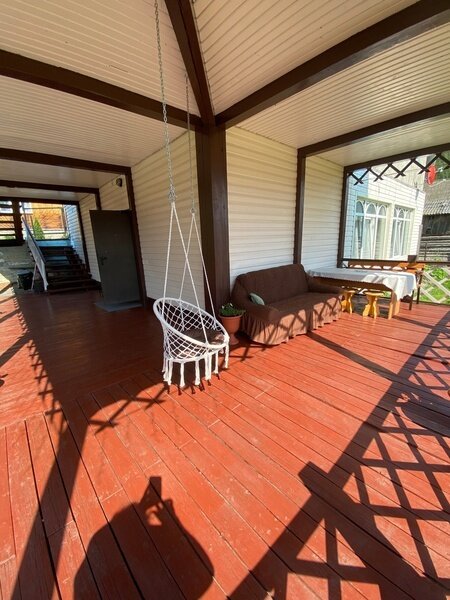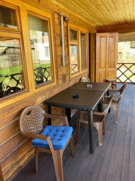 Коттедж доступен для проживания в любое время года. Внутри: большой холл с оборудованной всем необходимым мини-кухней, два санузла, кондиционер, удобная мебель, техника, две стиральные машины и большие террасы.