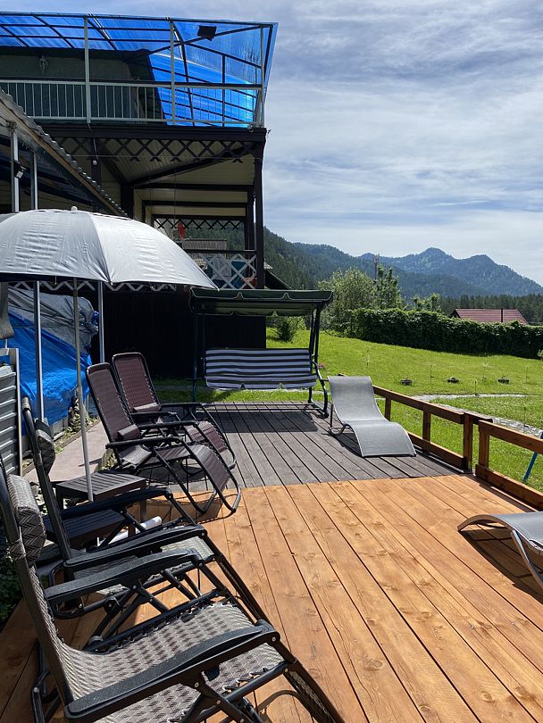 На каждом этаже своя терраса с садовой мебелью. Санузел, раздельно с душем, находятся на террасе дома первого этажа.