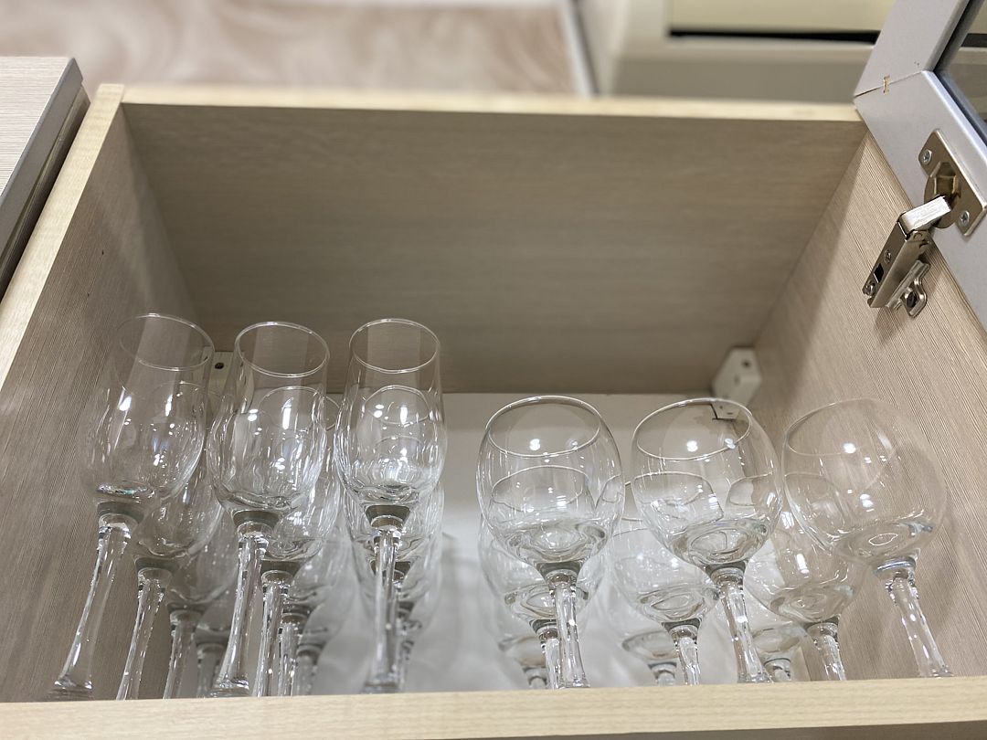 Кухонная зона оснащена: эл/плитой с духовым шкафом, эл/чайником, микроволновой печью, большим холодильником, всеми столовыми принадлежностями, посудой.