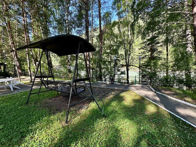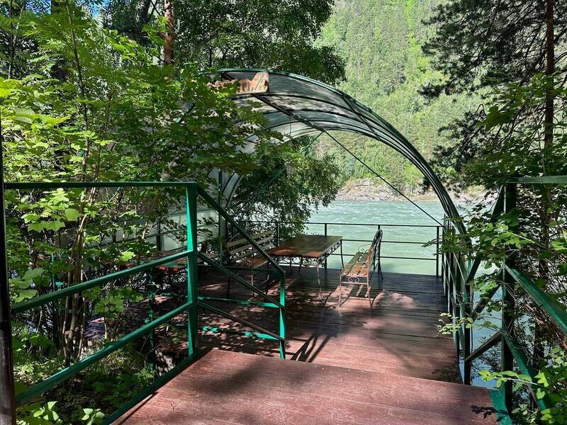 На территории базы отдыха есть летний палаточный лагерь с видом на реку Катунь, песчаный берег, бесплатная охраняемая парковка, несколько зон отдыха, беседки, ресторан на 70 гостей, волейбольная и детская площадки.