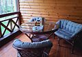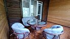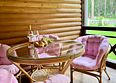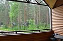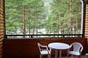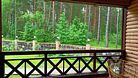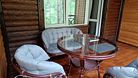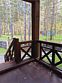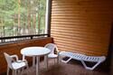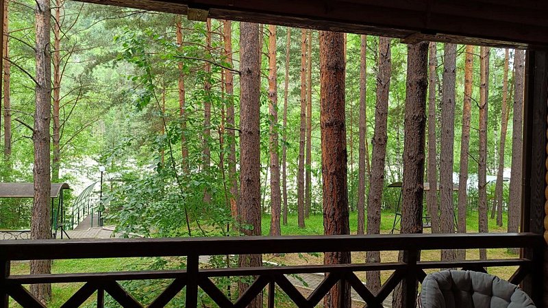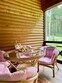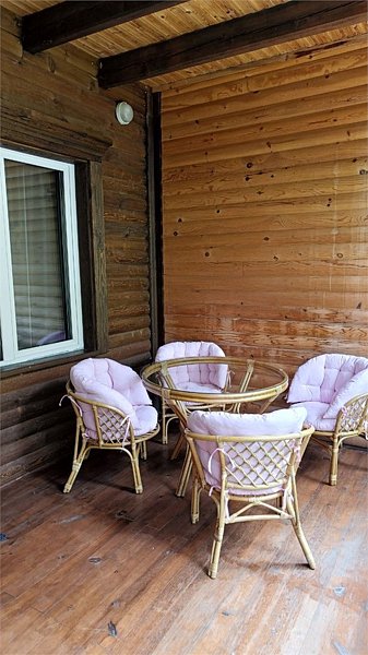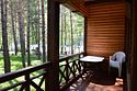Большая терраса с выходом на лес, оборудованная летней мебелью.