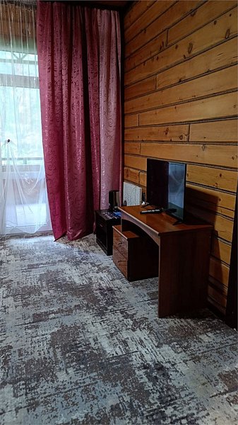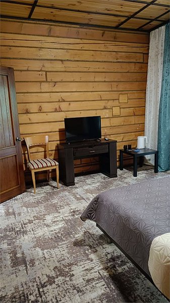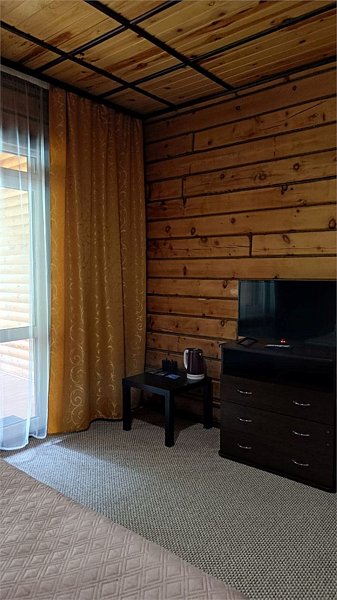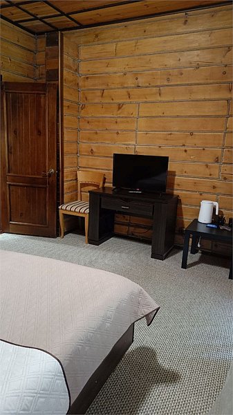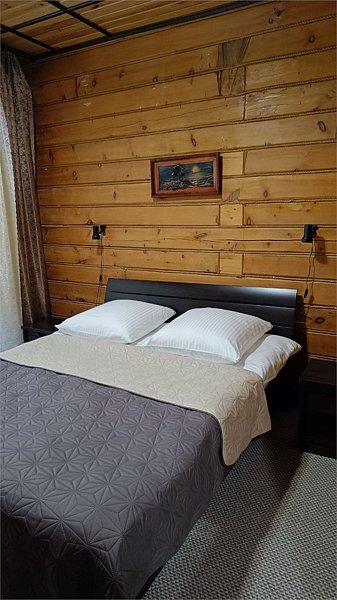 Уютный номер: одна комната с двуспальной кроватью и 2-мя прикроватными тумбами, ЖК-телевизором, комодом, журнальным столиком; в каждом номере: холодильник, фен, чайник, туалетная комната с раковиной, зеркалом, WC, душевой кабиной, набором туалетных принадлежностей, чайные пары; тапочки.