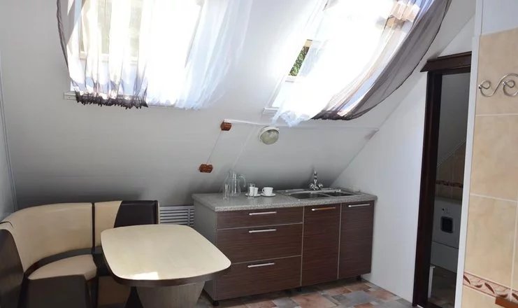 Комплекс включает корпус из кедрового бруса с мансардным этажом и два мини-отеля. Уютные номера различной степени комфортности оснащены всем необходимым для проживания.